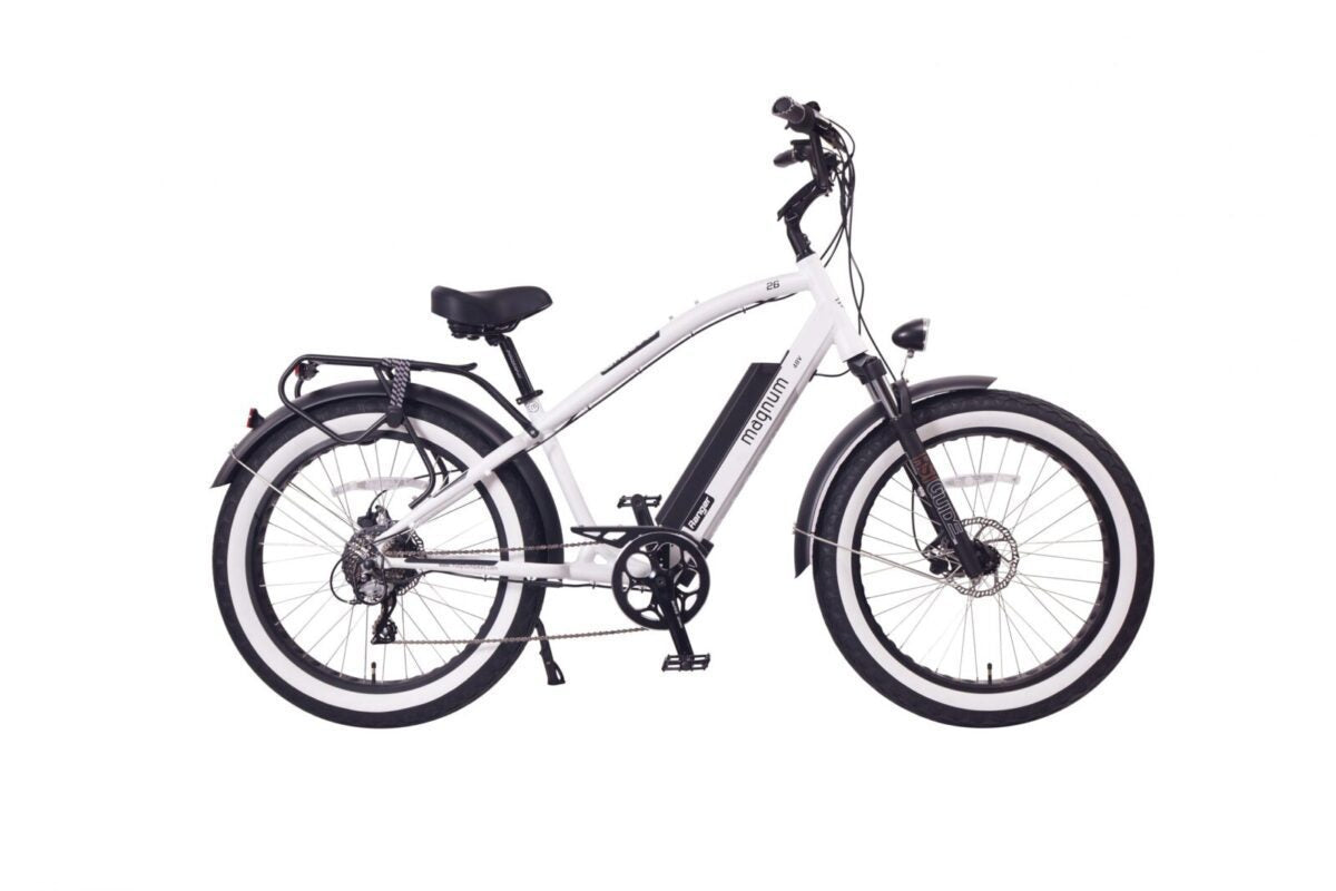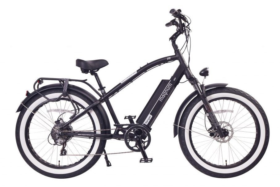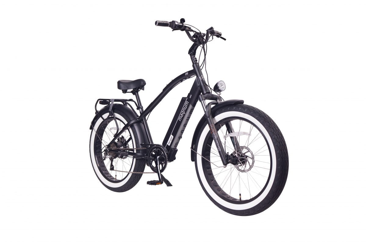 The Ranger is Magnum Bikes first entry into the fat tire cruiser segment, and this really sets the Ranger apart from our other electric bikes. The first thing you notice are the 4″ wide tires, which allow this bike to cruise comfortably over almost any surface be it sand, gravel or rough road conditions.